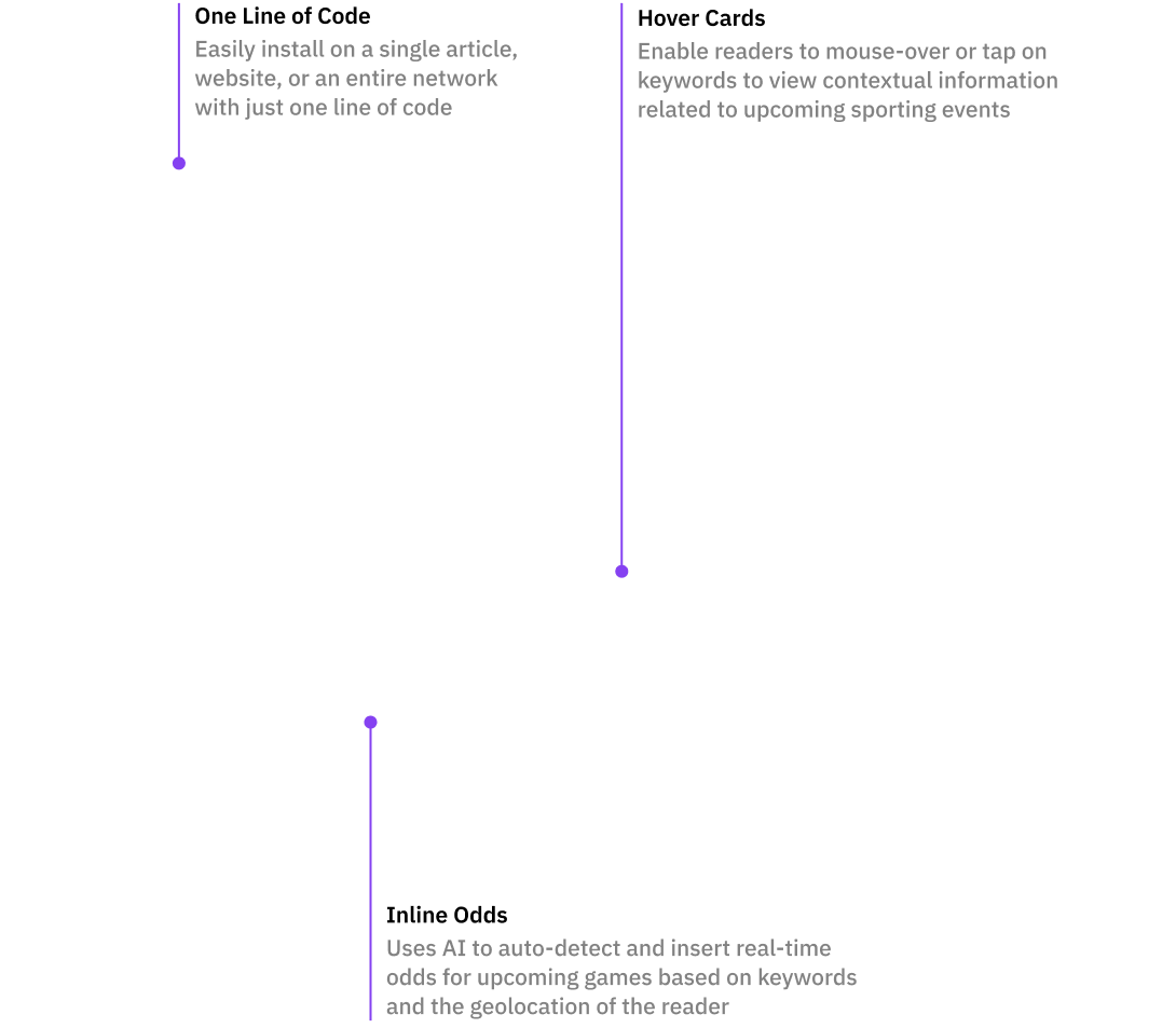 With CUB, publishers save time, increase revenue, and enhance reader engagement through the seamless integration of live odds and dynamic hover cards. Geo-targeted and at scale.