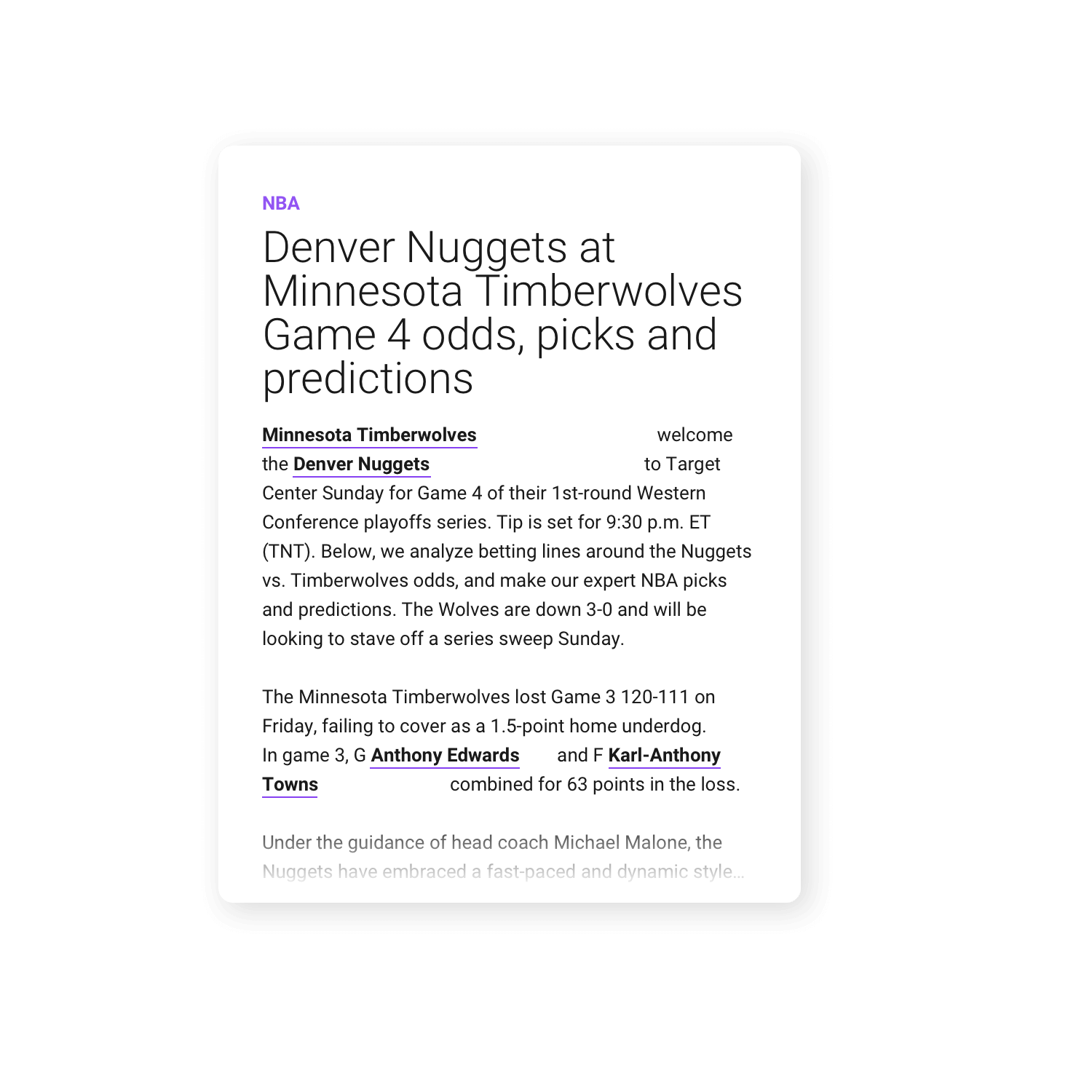 CUB's patent-pending technology automatically scans your articles for relevant keywords, such as team & player names, and enhances them with live odds and geo-targeted affiliate links from all major sportsbooks.